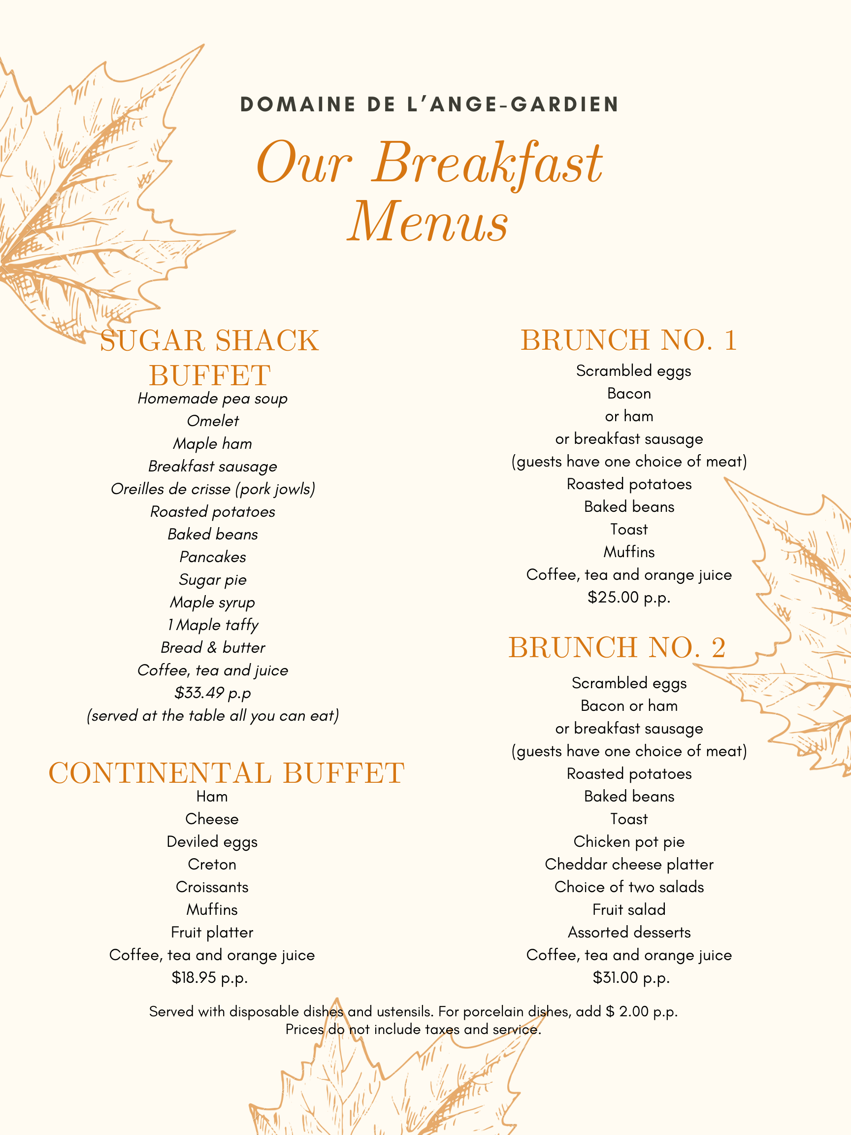 We are re-doing all our catering menus. For any information or prices, please contact us.